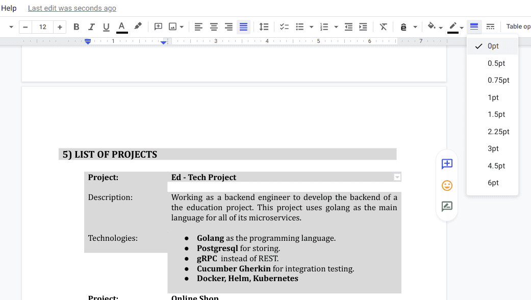Well, không cần màu mè phức tạp, ở CV mà mình trình bày từ đầu bài viết tới giờ mình có chia các thông tin thành hàng và cột rất ngay ngắn và đơn giản. Cách làm của mình như sau: