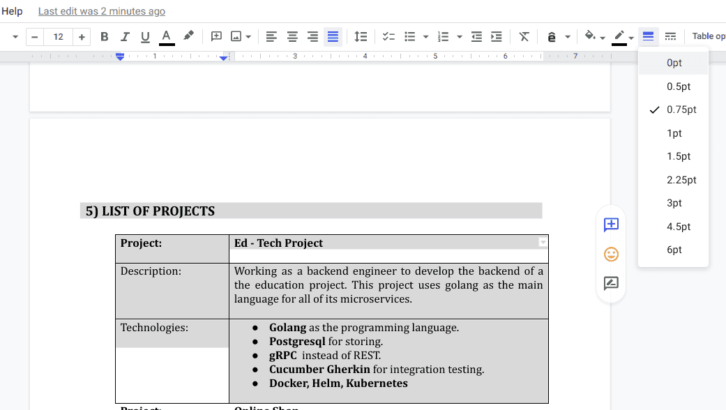 Để có thể làm nổi bật hơn những kĩ năng đã áp dụng trong các dự án này, bạn có thể bôi đậm những công nghệ mà bạn muốn.