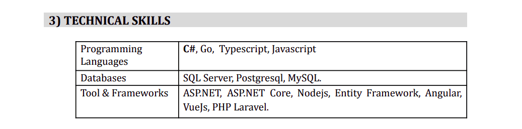 - Kiến thức chuyên môn thì rõ ràng rồi, bạn làm mạnh về gì thì bạn cần ghi cái đó, chẳng hạn ReactJs, dotNET, Java…