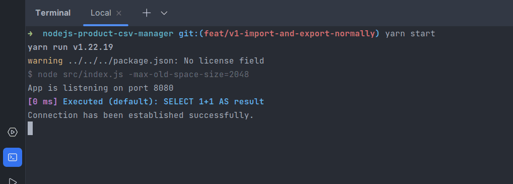 mkdir nodejs-product-csv && cd nodejs-product-csvyarn initĐiền vài thông tin cơ bản xong thì đến với bước thêm thư viện: