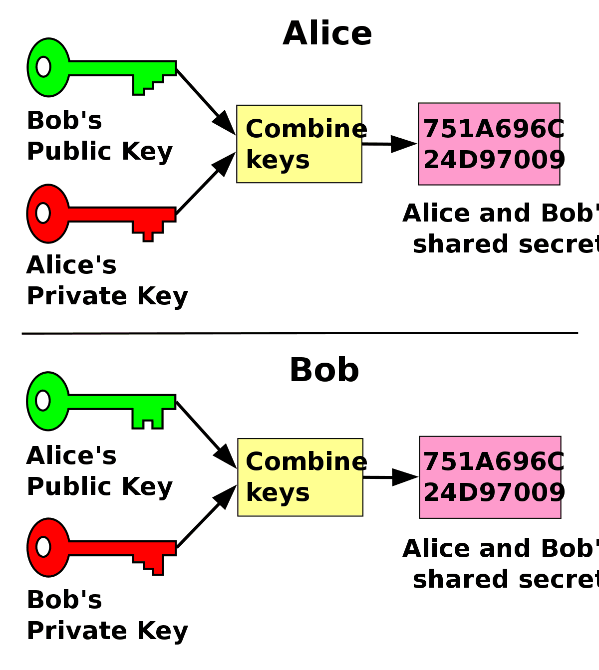 Để thực hiện việc thỏa thuận session key, TLS áp dụng thuật toán Diffie-Hellman. Session key sẽ không cần phải gửi qua lại giữa 2 phía mà sẽ được tính toán từ mỗi bên.