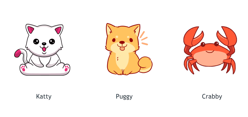 Để minh hoạ cho bài viết này thì mình sẽ dùng 1 câu chuyện với 3 nhân vật chính. Nam chính Puggy, nữ chính Katty còn phản diện sẽ là Crabby.