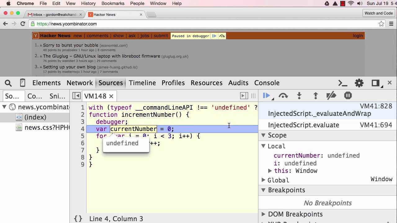 Nhưng hiện tại có 1 cách hiệu quả hơn đó là gõ debugger; vào chỗ cần debug, khi mở F12 thì trình duyệt chạy đến đó nó sẽ dừng lại.